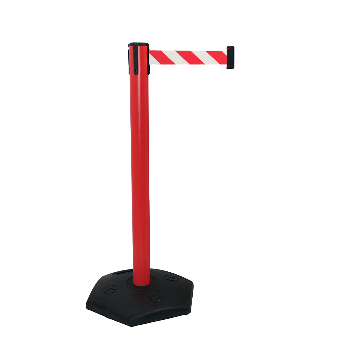 Contrairement aux modèles intérieurs classiques, le poteau Linea Exteria est fabriqué en PVC haute densité, un matériau insensible à l'humidité et à la corrosion. Sa base de 7,5 kg en caoutchouc lestée de béton assure une stabilité parfaite, même en cas de vent ou de bousculades.